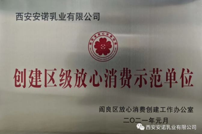 西安安諾乳業(yè)有限公司被評定為“區(qū)級放心消費示范單位”