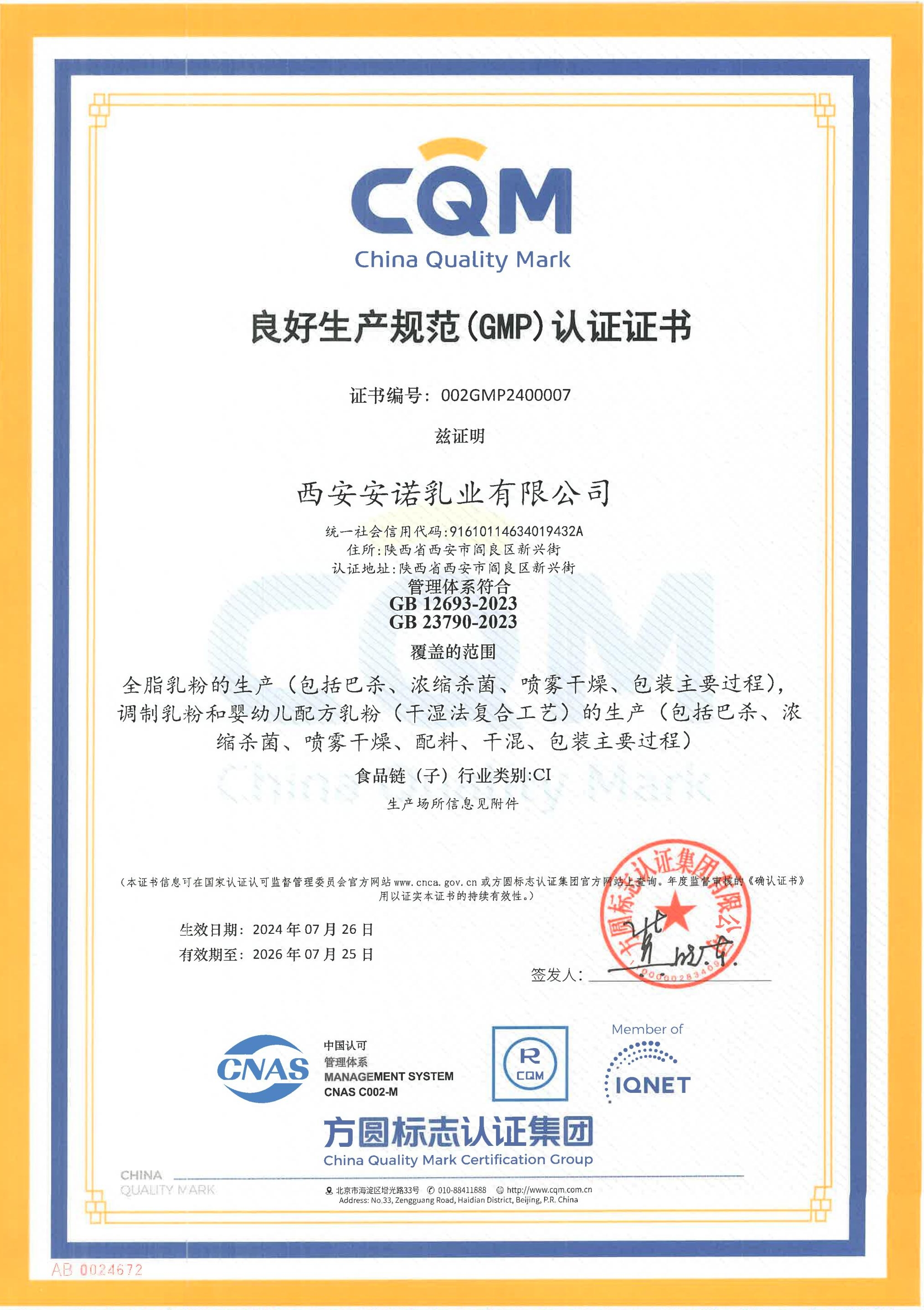 西安安諾乳業(yè)有限公司始建于1973年,迄今已有五十多年的發(fā)展歷史,安諾對于產品質量有嚴控體系網,確保每一批鮮奶、每一批原輔料、每一個過程、每一款產品,均按標準規(guī)范持之以恒,確保過程嚴謹有序,保證產品質量。